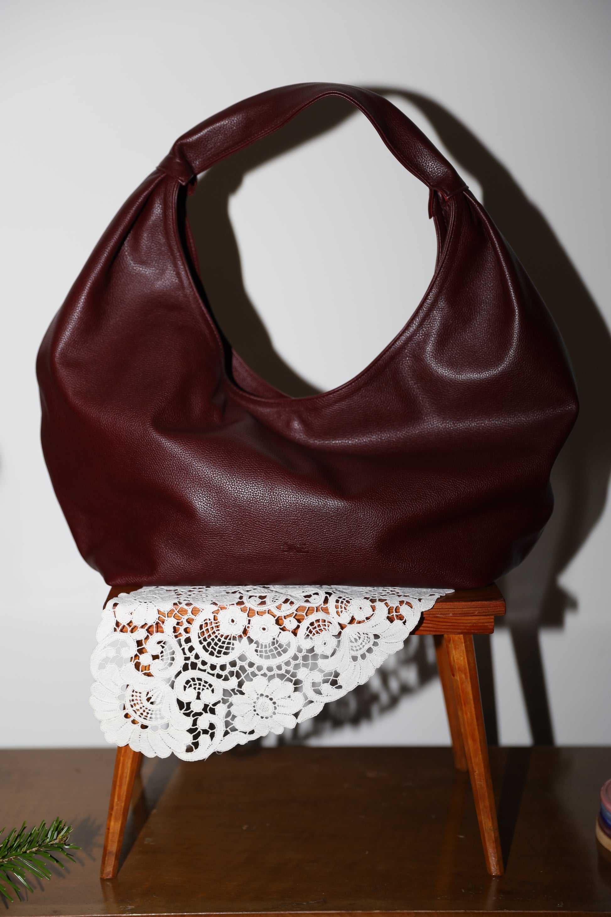 Miękka, plastyczna skóra w głębokim odcieniu dojrzałego wina.