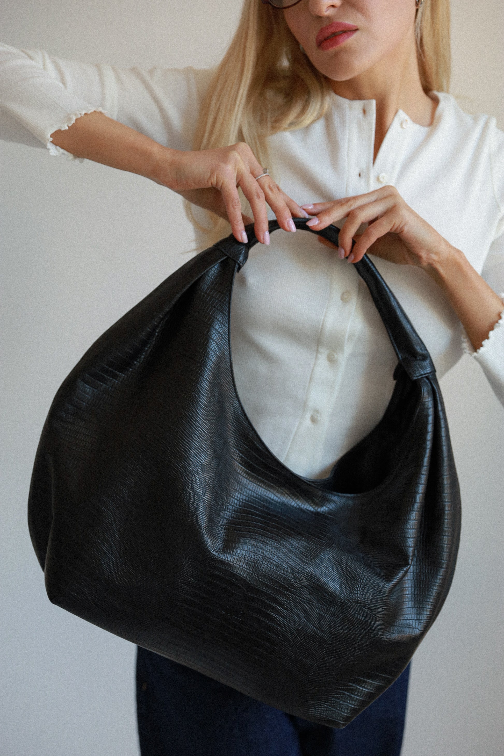 Naturalna skóra ma swój unikatowy charakter – drobne różnice w fakturze sprawiają, że każda torebka jest niepowtarzalna, tak jak Ty.